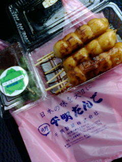 埼玉はいつも行く場所だけど、今日は帰りに親にお土産の団子を買って帰った。 (■←千明の読み方がわかりません) けど、醤油団子は首都高に入る前に串だけになっちゃった。うっかりだ。八兵衛の気持ちも分からなくはない。串団子はうまいね。