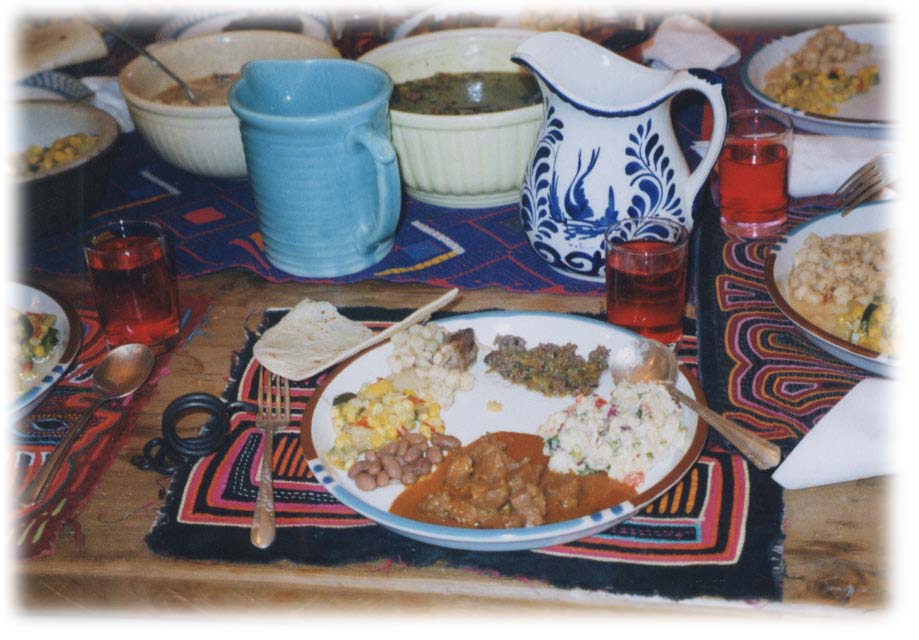 B&B にて伝統的なプエブロ料理の夕食 タオス泊