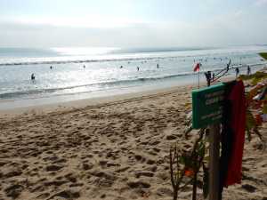 プラマをチェックアウトしてフライトの待ち時間まで過ごすクタのパラディソホテルに到着。いつものウエルカムドリンクを飲んでビーチに出ると、サーファーが一杯いました。