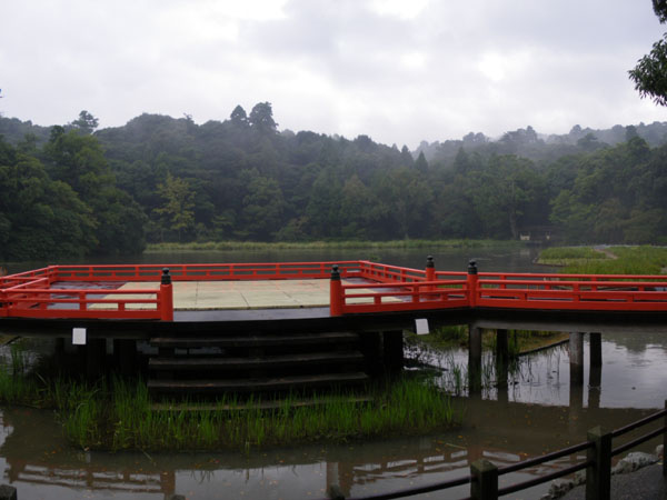 ![]() 火除橋と奥に第1鳥居 勾玉池(まがたまいけ) 第2鳥居
