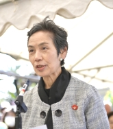 静岡県焼津市内で3月1日、第五福竜丸乗船中に水爆実験被爆し亡くなった久保山愛吉さんの墓前祭が行なわれ、日本被団協の和田征子事務局次長が「誓いの言葉」を述べました(写真)。