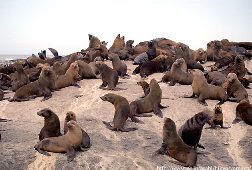 ケープタウンから車で30分くらいのヨットハーバーから船に乗って、シールアイランド(アザラシの島)を目指します。島はアザラシで埋め尽くされているので、島の近くで船のエンジンをとめて船上からアザラシを観察します。アザラシたちは、じっとしている者、海で泳いでいる者、海に向かって駆け込んでいく者など様々で、見ていて飽きません。