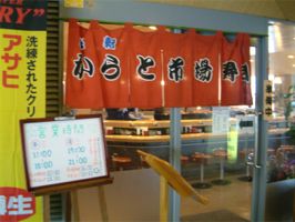 寿司をその場で握ってくれる店や、魚介類をいれた味噌汁を飲ませてくれる店等、様々である。 |