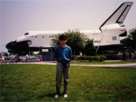 後ろに見えるのが、スペースシャトルの発射台。確か、数日後に打ち上げを控えていたと思った。 |