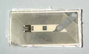 カードを切り開くとなかに外部アンテナの配線と共にRFIDチップがありました。