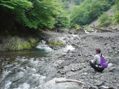 水量は少ないが各所に淵があり楽しめる。