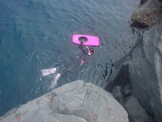 ◆そうこうしていると・・・なにやらダイバーが近づいてきた。