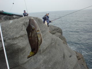 35cmを超えるメジナで本日最大級でした。◆また、せっちにもヒット! こちらは30cm近いカワハギだ!