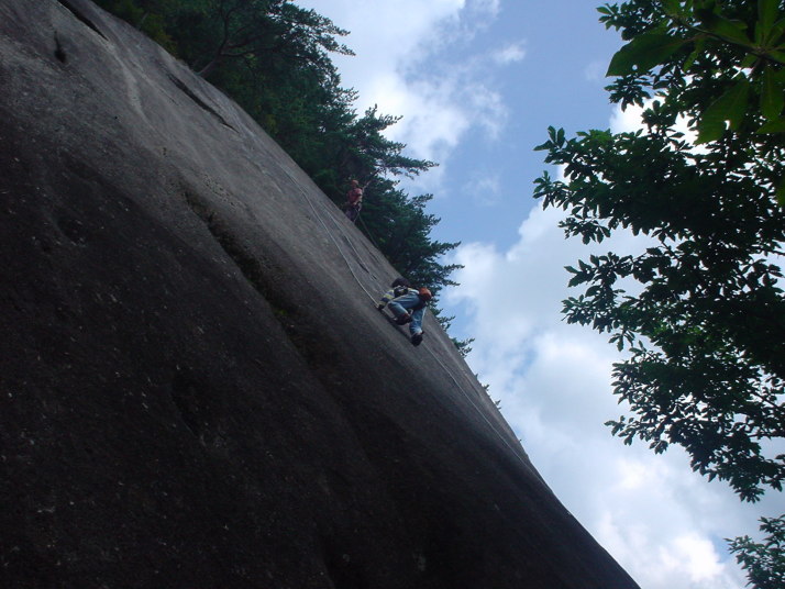 ◆まずはトモ隊長がスルスルっと登りトップロープを張る。