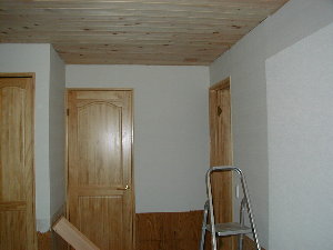 2001年6月13日 ビニールクロス貼り完了 同上の写真は北側にあたり西側に貼り継いでいるのだが、西側には窓があり、逆光で写真がうまく撮れないので省略する。 |