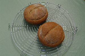 パン(自然酵母のブール) ホシノ自然酵母を使ってブールを作ってみた。膨らみはいまいちで、もう少し研究の余地がありそうだ。 |