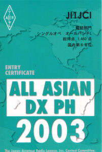 50はEスポシーズンが終ったせいか全然聞こえず。50から1200まで4バンドに出たが合計で38局×31マルチで1,178点。