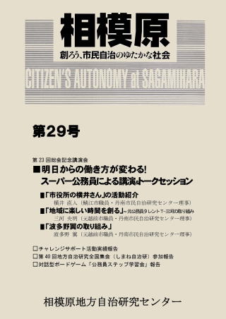 | 2021年2月 NO.23 2021年度地方財政セミナー報告 第38回地方自治研究全国集会(オンライン自治研with青森)報告 さがみはらSDGsパートナー認定・交付式報告 |