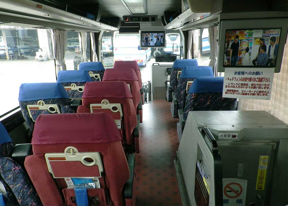 短距離路線の場合はふつーに4列です。これは後部にトイレが付いたものですが