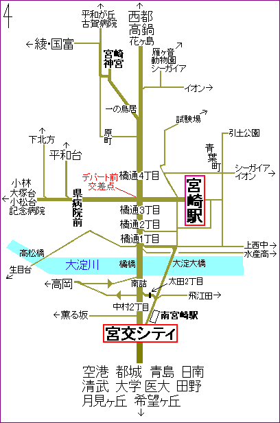 〜 | 宮交シティ 橘通一丁目 橘通二丁目 橘通三丁目 山形屋前 カリーノ前 宮崎駅 |