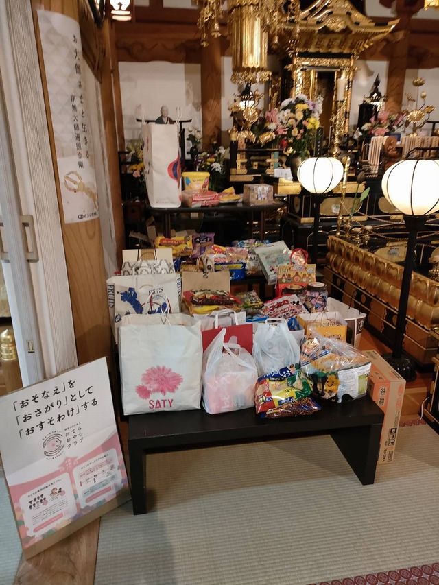 お供えは、「おてらおやつクラブ」の活動として各支援団体におすそ分けさせていただきます。