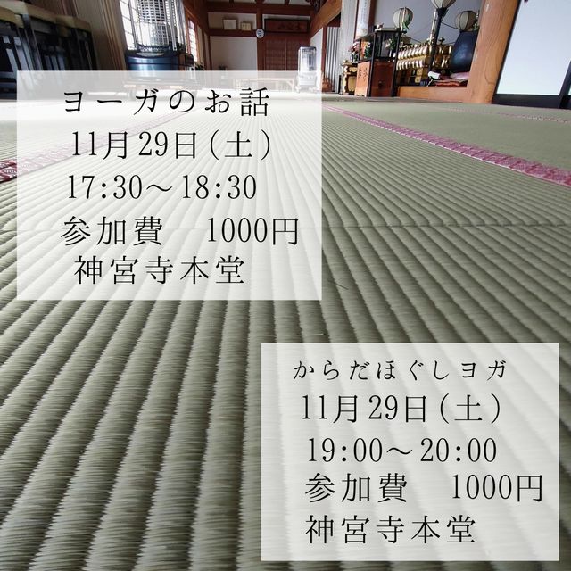 次回の寺ヨガは『からだほぐしヨガ』となります。