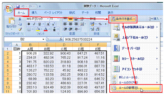 ルールの管理を使えば、条件付き書式の優先順位を自由に変更できます