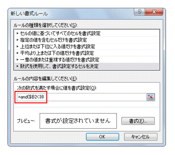 この2つがTRUEのときにだけ、AND関数による条件式がTRUEとなり、ルールが適用されることになります。