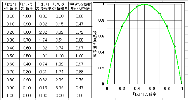 二者択一の質問で、「はい」の確率がpだとすると、「いいえ」の確率は(1−p)だから、