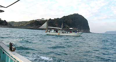 11時半も過ぎ、ちょっと潮が緩んできた。そろそろ掛からんとまずいぞっと思っていた。誘いは一巻き一秒半くらいの青物としてはちょっと遅めの誘いをしていた。と、七回くらいで、グーっとアタリ。そのままガツ、ガツ、追ってくる感じで数回巻いたところでブルブルっときて、ギューンと締め込まれる。 水深がまだ50メートルくらいで掛かった。ハリスも4号ということで多少竿を立てて対応。運のいいことに周りには船はおらず、オマツリの心配はない。船中も竿を出していないようだし、メジロは船から離れていくように逃げる。ラインを出したり巻いたりするのだが、風のための波がすごくて立っての対応はムリ。 竿を支える左腕、リールを巻いてる右腕は乳酸がたまりまくりでシンドイシンドイ。 五分以上かかっただろうか、それでもなんかとバラさず、ハリス切れにもならずにメジロは船頭さんの差し出すタモに無事入る。あと一、二匹釣って連れのお土産と思うがその流しで最後になってしまった。 コマサキは潮が動くと根がある関係で波が立つし、そのうえの強風のために初心者二人にはつらい釣行となってしまいましたわ。鯛のアタリと引きを味わって欲しかったんですが。。。 帰りに市場に寄って彼らはお土産を買いました。買ったのは釣れてるメジロとほぼ同じサイズのメジロ。アオリイカ、鯛はキロ4000円、メジロは一匹・・・4000円でしたわ。 |