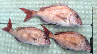 このところ鯛様からすっかり見放されているようで、釣行するのも腰が引けるが、行かなければますます嫌われてしまうからやっぱり行ってしまう。今日のお客さんは三人だけで、前は埋まっているので左艫に。 田倉からハリダシへの流しだ。水深は25メートルだ。こんなときこそカブラを出したいところだが痛恨にも忘れてきてしまった。ギジを少し短めに切ったのを混ぜる。底から五回くらいの誘い指示。底にいるのねぇ〜、やっぱりカブラかも。と、思っていると右ミヨシでいい引きをしている。 それはバラしたようだが、誘ってもくるみたいだ。 風は東よりなので場所的にはなんとか前にも対抗できる。七回誘って仕掛けをなじませていると、ググ、グーンとっと掛かる。久々のしっかりしたアタリだ。前回のドラグの反省もあり、今回ドラグは結構しっかり目に締めている。突っ込みではラインが出て行くが、うまく利いているようでいい感じだ。 手応えからは40センチクラスだ。浅いからすぐにサルカンが見え、たぐってくると上から三番目にきている。ちょっと短く切ったピンクのギジにきていた。 上がった鯛は冷たいぞ。ギジの追いはとっても悪そうなので、誘いの速度はかなりゆっくり目にしているが追ってはこない。 20分ほど過ぎた頃、十回巻いてなじませているとさっきと同じようなアタリで掛かる。ちょっと型は小さくなって37センチ。上から四番目にきている。 風がだんだんと北東になってきて潮の流れる方向と一致。こりゃいかんわって思っていると前が掛ける。と同時くらいに十回くらいでアタリ。でもすぐはなしたみたいだがそのまま二〜三回巻くと、グ、グっと追ってきて掛かる。引きからみてさっきよりも小さそう。 上がったのは下から三番目に35センチ。仕方ないですね。 そのあとは前でアタリが頻発するもこちらに一切なし。これだけ喰いが渋いときにはしょうがない。早めに巻いたりしてみたがそれも不発。周りの船もあんまり上がっている気配はなく、この場所で三つ釣れれば御の字でしょうか。結局、左前が四つ、右前が五つで終了となりました。 久々に鯛の引きを楽しめて、また鯛と呼べるのも釣れましたし、リハビリはうまくいきましたわ。 |