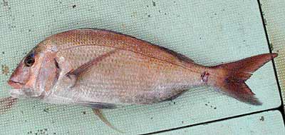 この時期は鯛も元気で引きが強いのかなぁ〜。それにしても重みもあるしなぁ〜。三枚目を上げた頃、雨も本降りになってきた。雨具を着込んですぐ大雨に。叩きつけるように降る雨は風の関係で正面 方向から降り込んでくることになる。思わず左に移動。このヘタレな行動がよくなかったのか、右ミヨシでは連続で鯛が上がる。それも型が割りといいのが混じる。雨は背中からになるがアタリが遠のく。 チャリコが掛かるのがいやだから一巻き一秒程度の早巻きをしていたがアタリが来ないのが寂しくなってくる。降りしきる雨の中、スローな誘いにすると、グ、グっと気合の低いアタリが。潮がソコソコ流れているからギジが自然に動いているほうがいいのだろうか、触りに来たらだますようにゆっくり誘い上げると針に掛かるようになった。 20回ほど巻いて、掛かるのは真ん中より下の針になってきた。活性が低いんでしょうね。アタリも減ってきて雨に顔を伏せて誘っていると眠くなってきた。クラッチを切っても仕掛けを落ちなかったので反射的にクラッチを入れたときに一気に持っていかれたが頭が寝ていて対応できずにバラス 。右ミヨシのY氏に笑われてしまった。 いっぺんに目が覚めて、早巻きをやめてゆ っくり誘うことにしてから数枚追加した。それにしても鯛を取り込むために屋根の外に体を出すのがいやになるくらいの土砂降りだった。そんな天気だが、一個くらい50センチ超えが欲しいので早巻きしてみてもまったくこない。 大雨警報が出された雨もやみ、太陽も顔を出してきた。アタリはポツリ、ポツリと出て針に掛かってやり取りするのだがよくはずれてしまう。五回くらいははずれてしまっただろうか。10時過ぎに潮が飛び出したのちに止まりで終了となりました。 結局七個釣っていたようです。型は小さいですが、引きは冬場の50センチクラスに匹敵するように思いました。アタリが渋かったので神経をけっこう使いましたが楽しく釣りができました。 |