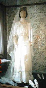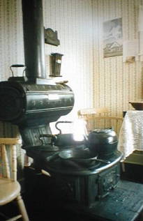 モードのウェデイングドレスです。彼女の友人のお手製だそうです。靴はなんと20センチとか、小柄な方だったのでしょうか。右はキッチンストーブです。部屋がとても綺麗に手入れされている印象を受けたのですが、帰宅後に購入した絵葉書と見比べたところ、どの部屋も壁紙を張り替えてありました。昔の大柄でやや薄暗い色の壁紙よりも、小花のかわいらしい壁紙に変ってとても明るい感じの家になっていました。カナダの家は手入れによってその価値が上がるといいます。この家も昔をそのままを残すのではなく、手入れをされて大切にされているという印象を受けました。室内はフラッシュ撮影禁止ですのでご注意を。