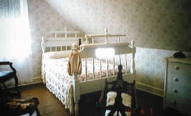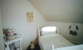 建物は外からでは小く見えましたが、2階は3ベッドルームありました。そのうちの2部屋です。確かゆりかごのある部屋がモードの生まれた部屋だったと思います。ここも壁紙が張り替えられて明るいかわいらしい部屋になっていました。