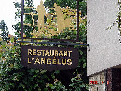 | 村のレストラン・看板がミレーの晩鐘をかたちどったものでした | |