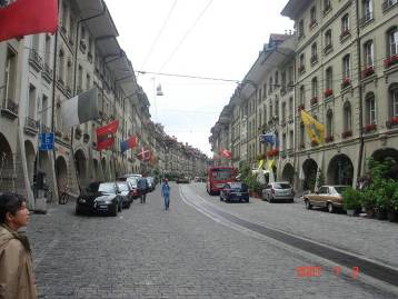 ここベルンは世界遺産に指定されているように、古い中世の町並みを保存してあり、石畳と、噴水でアクセントをつけてありました。通りを30分ほどかけて端まで行き、後はゆっくり戻ってきましたが、ガイドブックに載っていたからくり時計台は思っていたほどのものではなくがっかりしました。連邦議会も工事中で囲ってあり見られませんでした。でも町並みや大聖堂は見応えがあり、ここまで足を延ばした甲斐がありましたね。