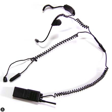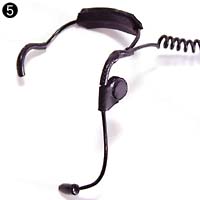 5:完成したヘッドセット部分。パーツを針金に通し、耳掛け部分には熱収縮チューブを被せてあります。