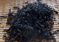 翌朝、茶葉は茶色に変色している。丸いまとまりをほぐして、発酵の進まない中心部を表側に返して、またしばらく笊に置く。後は、茶葉が黒くなってカラカラに乾くのを待てばいい。