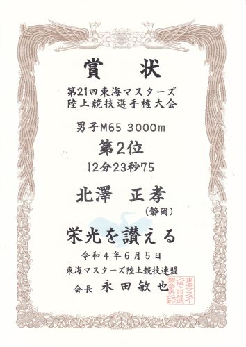 5km M65(65歳〜69歳) 2位 20分15秒