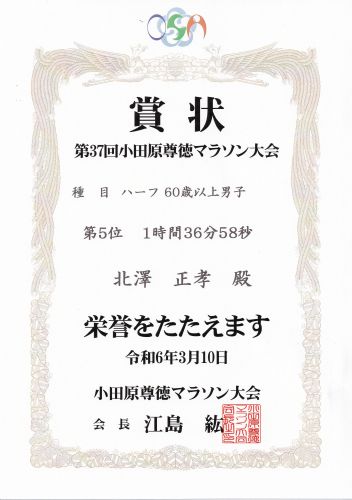 10日(日) 第37回小田原尊徳マラソン出場(神奈川県小田原市)