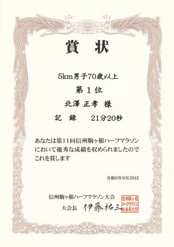 まだまだ足腰の状態は良くないのですが、心の中では何とか年代別では1位を狙っていました。ただ、年代別での表彰はありません。