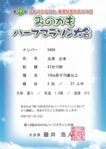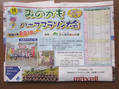12日(日) 第19回みのかもハーフマラソン出場(岐阜県美濃加茂市)