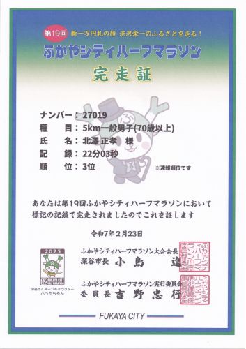 23日(日) 第19回ふかやシティハーフマラソン出場(静岡県森町)