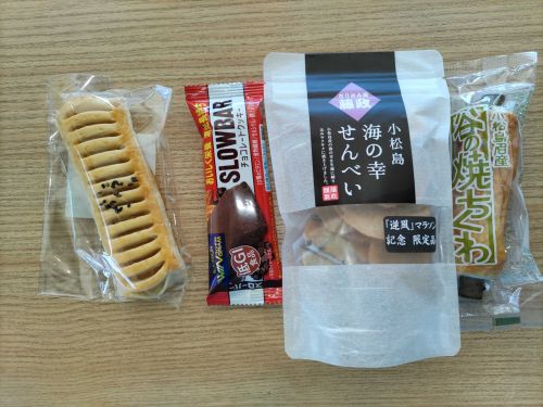 完走賞(味付けのり、ちりめん等)無料配布の食べ物(うどん、アンパンなど)