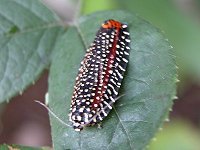 この幼虫は寸胴で3センチ位。黒+黄+少々青の幼虫です。 |