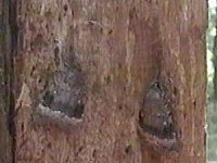 今の時期に林の中で日光の遮られる枯れた大木の樹皮下や空洞を観察すると、