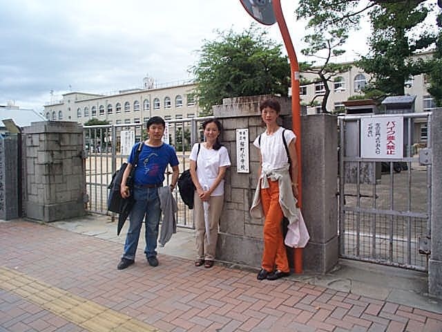 伊良林小学校の門の前で記念撮影をして、「自由飛行館」へ。市電「新中川町」から「西浜町」で「正覚寺下行き」に乗り換え、
