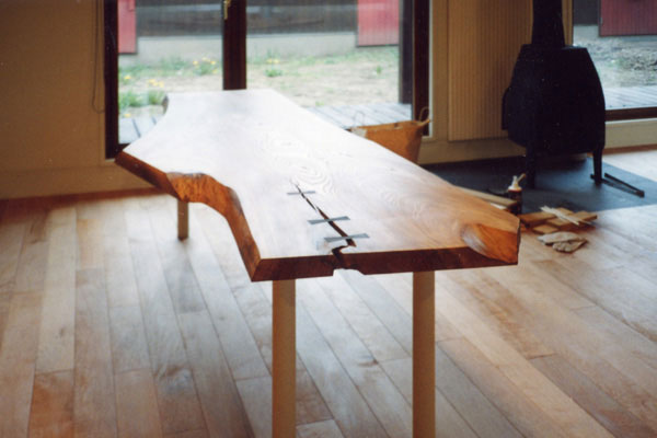 ナラ無垢材でテーブルとデザインを合わせたベンチも製作しています。