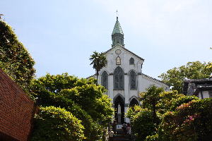 | 日本最古の天主堂で国宝に指定されている。隠れキリシタン達が名乗り出て「信徒発見」の場でもあります | 残念ながら内部は撮影禁止ですが、木造建築の教会内部は厳かで趣があります。 |