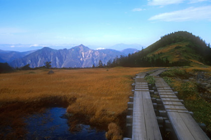 最後の急登を登ると、突然湿原が現れた。