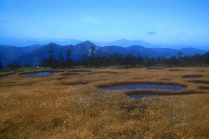 池塘と鳥甲山