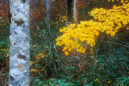 出発のときは気づかなかった、ほのかな黄葉が迎えてくれた。
