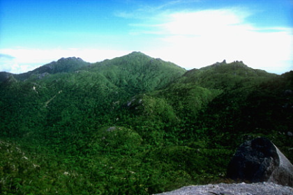 黒味岳の山頂に立つと、目指す宮之浦岳を真ん中に、永田岳(左)、翁岳(右)が目の前に。