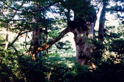 なんてことない写真だけど、この二本の杉は枝でつながっているのだ。