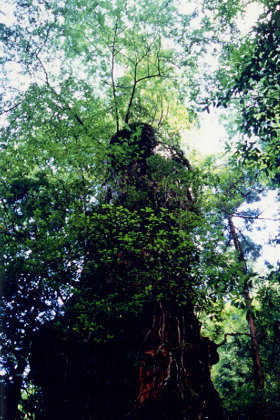 近くで見ると、根が伸び蔓がからんだ独特の幹をしている。